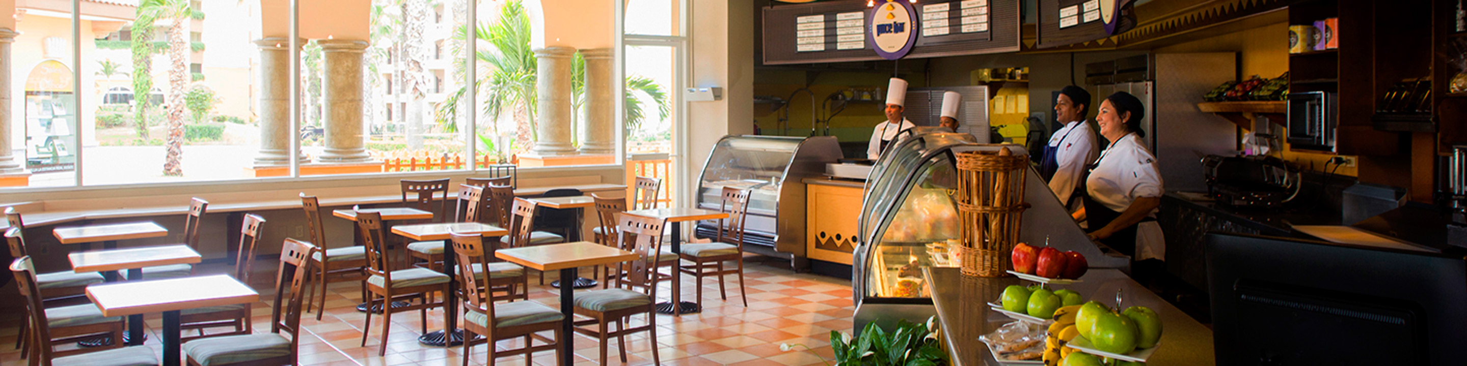 When you need to grab a quick bite or sip a cool soda, head to the Palmita Deli & Market located near the lobby entrance of Villa del Palmar. Designed for your convenience, the Palmita Deli & Market offers a wide variety of sandwiches, salads, wraps, muffins and snacks meant for eating in or taking out. This is also the perfect hangout for coffee lovers -- get your mocha cappuccino and our specialty: the mint vanilla cappuccino. Open daily 7:00 a.m. to 10:30 p.m.